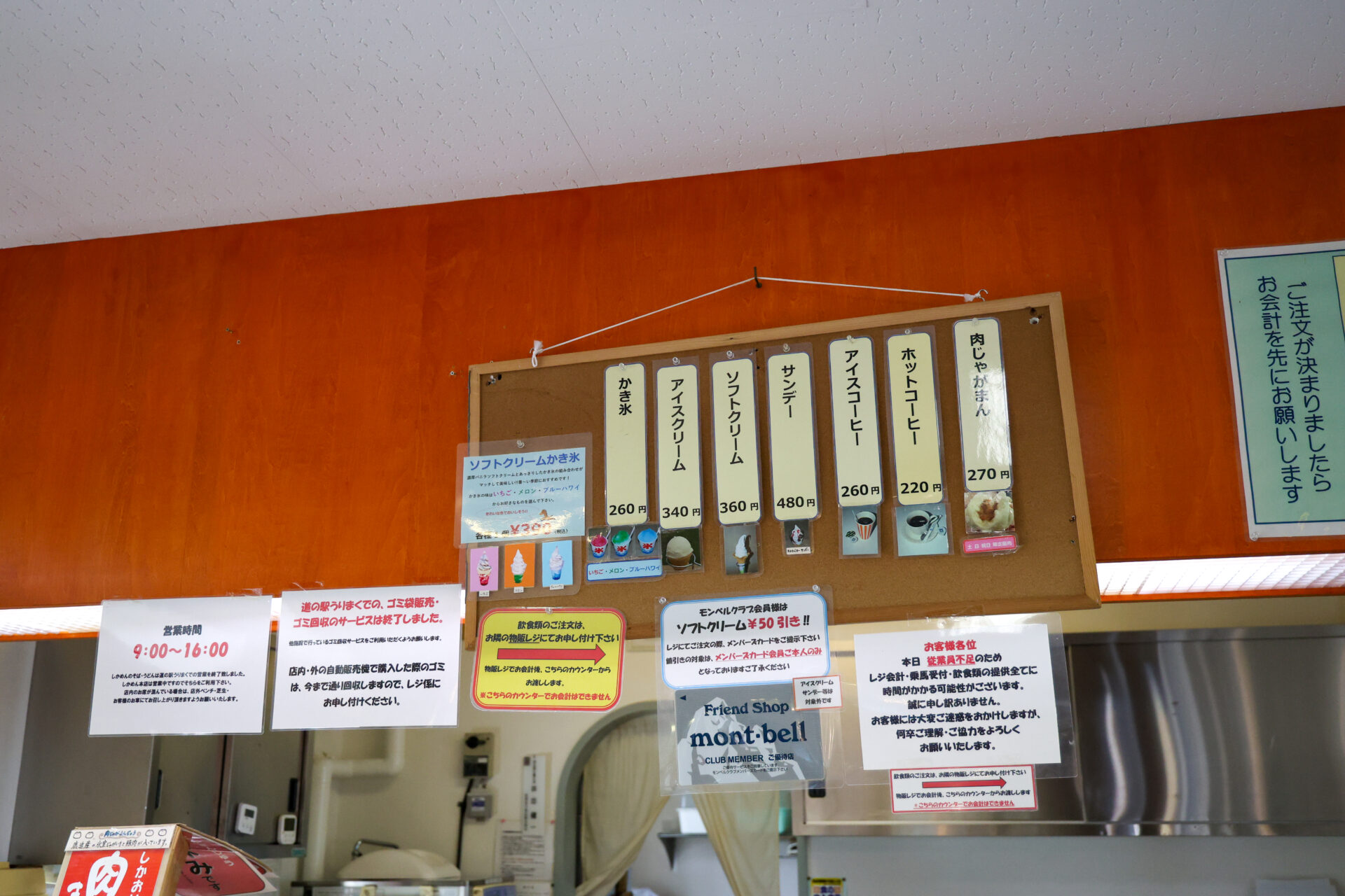 軽食コーナーでは、鹿追産のそば粉とダシを使用したそばやうどんが人気です。また、ソフトクリーム(340円)やサンデー(360円)、名物の肉じゃがまん(270円)なども販売されています。新鮮な牛乳から作ったソフトクリームは道の駅うりまくの人気メニューです。モンベルクラブ会員はソフトクリームが50円引きになる特典もあります。