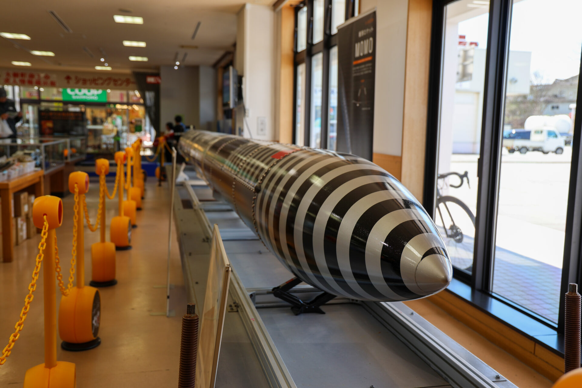大樹町は「宇宙のまちづくり」を推進しており、道の駅内にはロケットの実機やエンジンが展示されています。IST社のロケットをはじめ、JAXAの宇宙関連グッズなども販売しています。