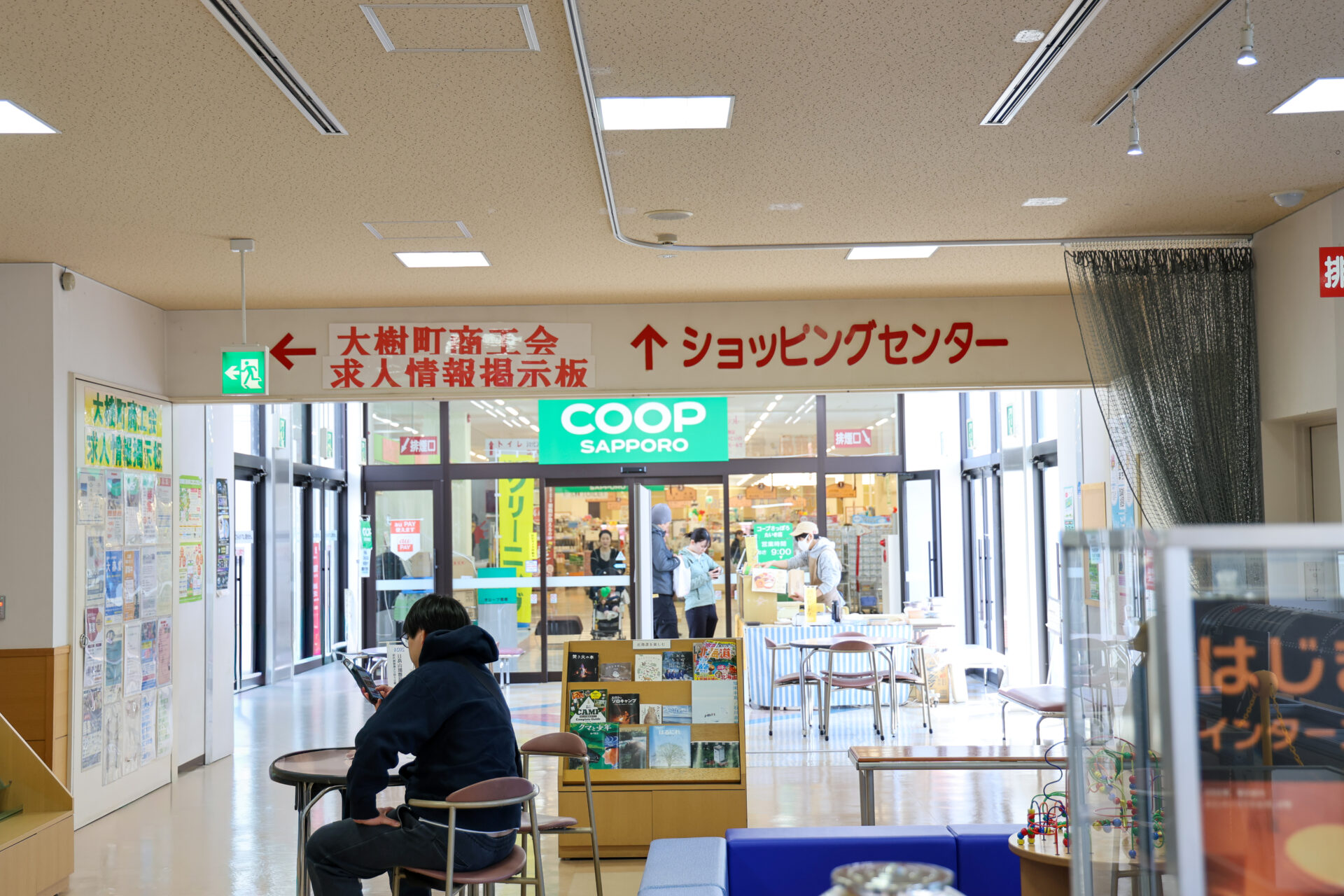 コープさっぽろをはじめ、薬局、衣料品店、100円ショップなどがあり、日用品のほとんどが揃います。施設内には休憩スペースも設けられています。