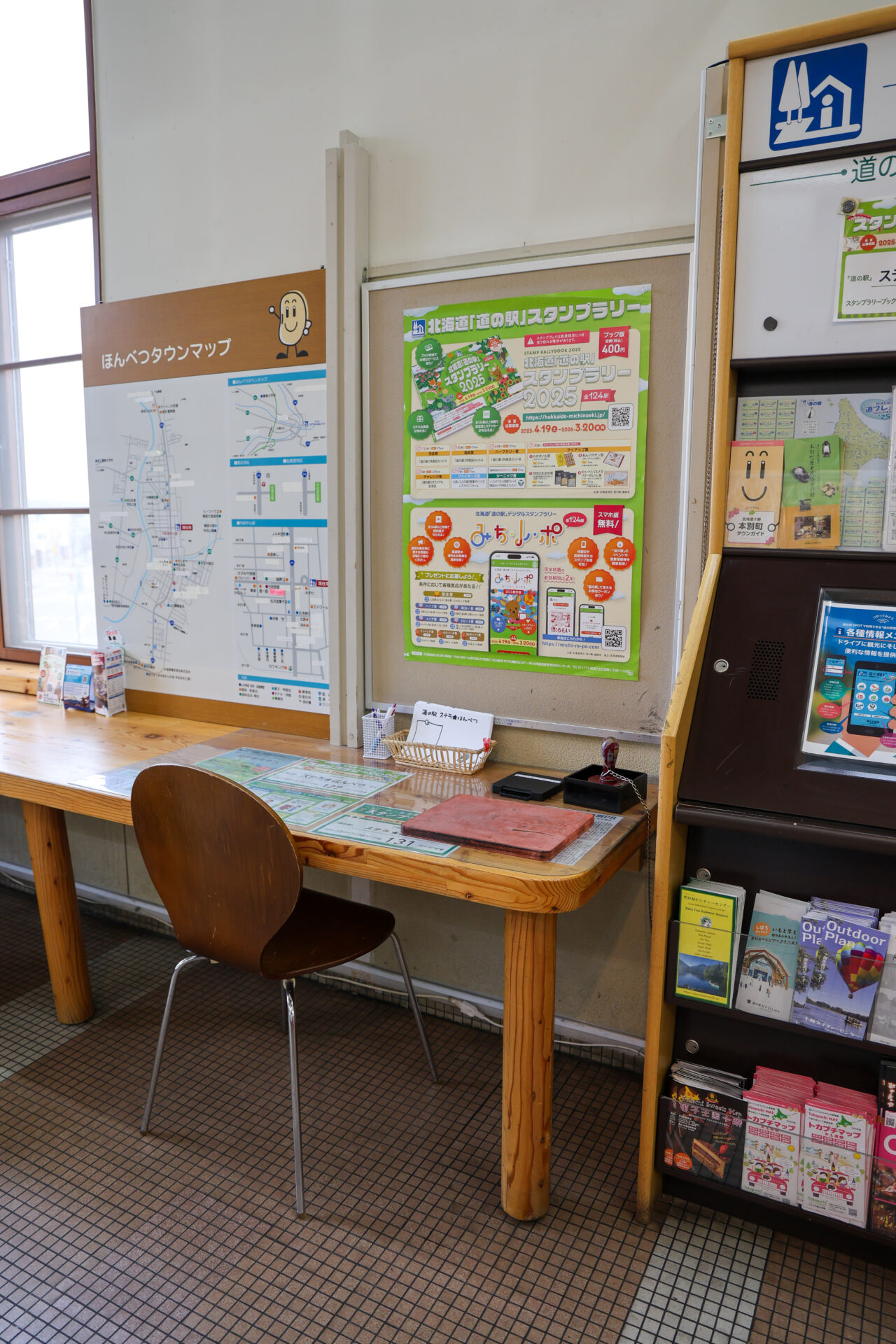 スタンプは館内の観光案内所付近に設置されています。本別町の観光情報やイベント情報、グルメ情報なども入手できます。